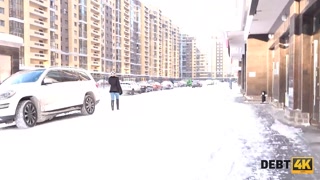 DEBT4k. Blond owner of a rifle drags debt collector into kinky affair
