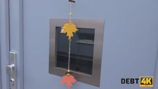 DEBT4k. Lovely brunette pays off the debt with help of her sweet cunny