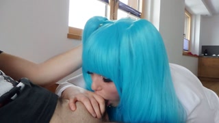 Deepthroat Blowjob from Blue Hair Slut and Cumshot in her Mouth