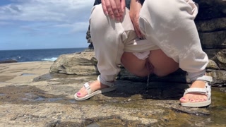 Desperate peeing girl outdoor in public compilation