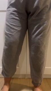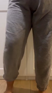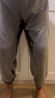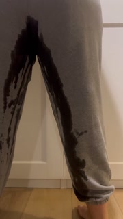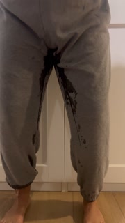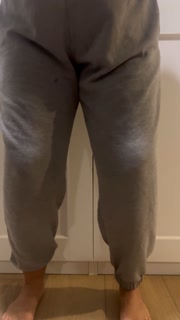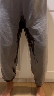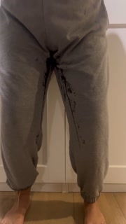 Desperately peeing my sweatpants and making a mess all over the floor