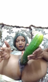 Destroying my pussy with a 13inch thick as fuck cucumber