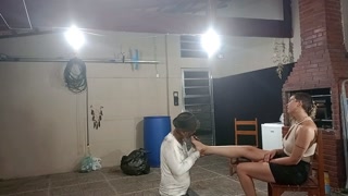 dirty beggar has a lucky day when asking for recyclables at the lady's house
