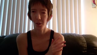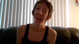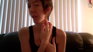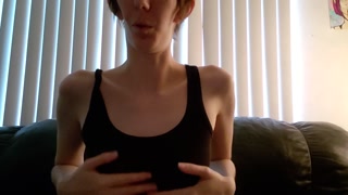 Disabled woman whispers about pleasure and tortures tits