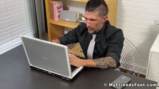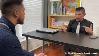 Dominant boss foot licked and worshipped by young employee