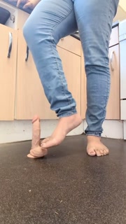 ebony bare feet ball stomping humiliation using dildo