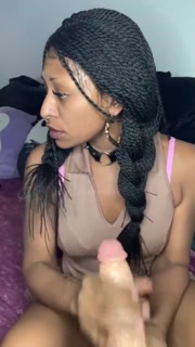 Ebony Latina Sucks Dick in Tan Dress