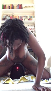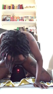 Ebony slut gets double orgasm from fucking machine