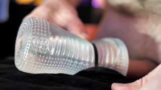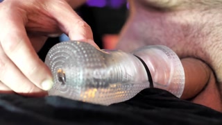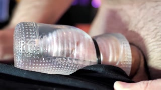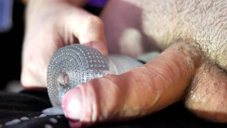 Edging and Cumming Close Up in a Clear Sleeve