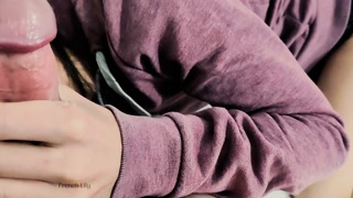 Elle takes a huge squirt of cum on her small tits!