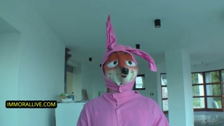 EVIL EASTER BUNNY Gives NATURAL BUSTY TEEN ANAL CREAMPIE!