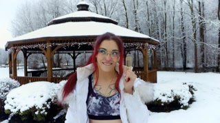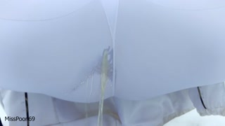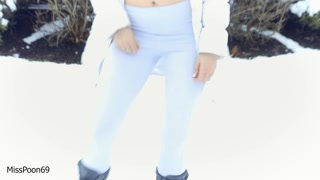 Exhibitionist Babe Peeing through leggings in snow