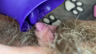Extreme closeup big clit licking toy orgasm hairy pussy
