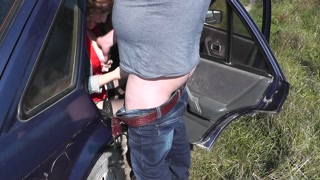 Extreme sex in car. Outdoor sex. Lover cumshot. Creampie