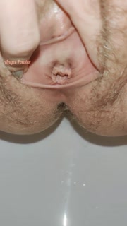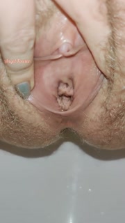 Extremely close up wide open hairy pussy pissing for your pleasure