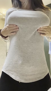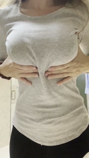 fake boob play and hard nipple play through top with titty drop