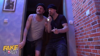 Fake Hostel girl double penetrated by two huge cocks