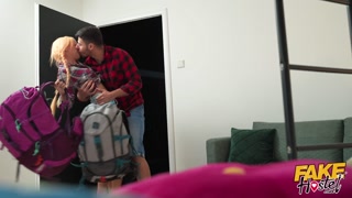Fake Hostel - Quicky with sexy girlfriend turns into a threesome when busty MILF staff gets horny