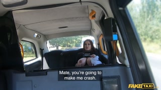 Fake Taxi Sabien Demonia in Fishnets gets fuck by a big cock with her big natural tits out