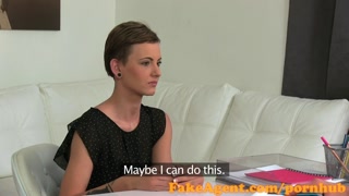 FakeAgent Skinny brunette babe sucks and fucks in casting