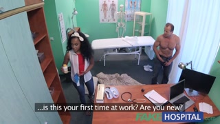 FakeHospital tight ebony pussy gets 2 cum loads from doctors fat cock