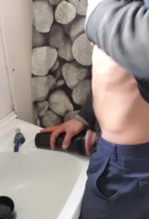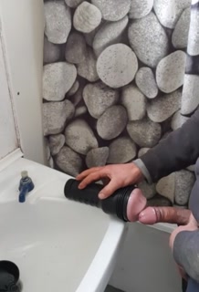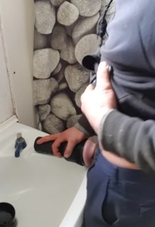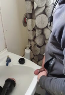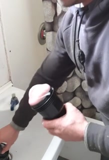 Farm hunk on break pounds fleshlight on bathroom sink till cum