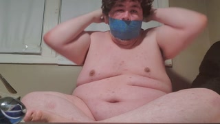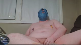 Fat male tapes face fully cums with toys in ass