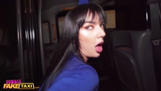 Female Fake Taxi Lady Gang Fucks her Passenger Whilst she waits at the Services