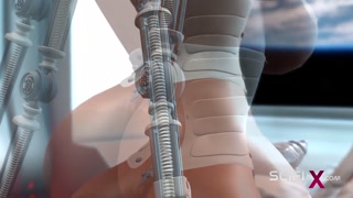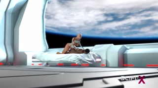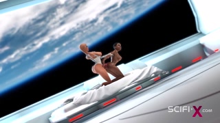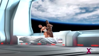 Female sex android plays with a sexy ebony in the space station