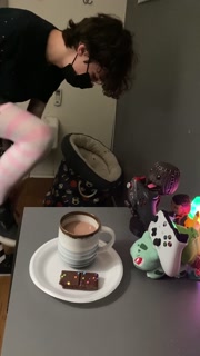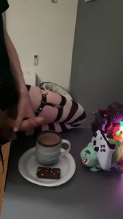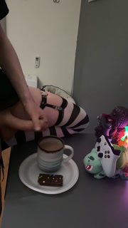Femboy cums in his coffee and drinks it all