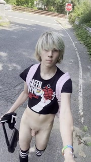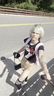 Femboy exhibitionist in public