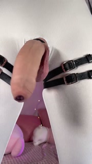 Femboy in Tight White Bodysuit Strokes Big Cock with Straps & Harness