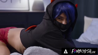 FEMBOYISH - Playful Femboy Angel Santana Seduces Stud Ethan Chase With Footjob & Raw Bussy Pounding