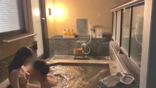 First hot spring trip♡SEX in a stylish open-air bath at night♡Japanese amateur hentai