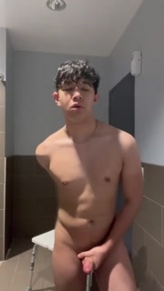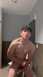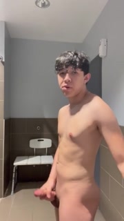 Fit asian twink bathroom jerkoff