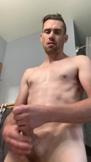 Fit Guy has a Hard Cum while Smoking and Playing in the Bathroom