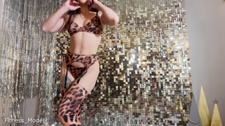 Fitness cat in leopard underwear