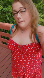 Flashing cute tits hiking on the public nature trail