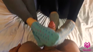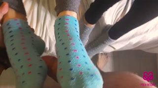 Foot-sock fetish with two girls