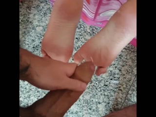 Footjob + final cumshot on her feet