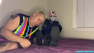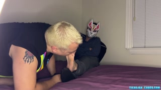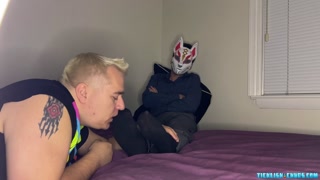 Foxy Sox gets foot licking and sucking from blonde chubs
