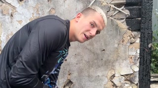 Fucked and finished off a guy's ass on the ruins of a burnt house