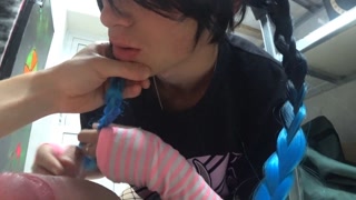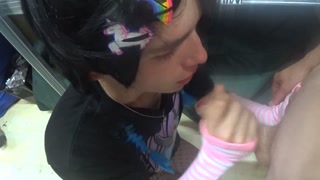 Fucked cute trap venti and cum on face and glasses with thick cum