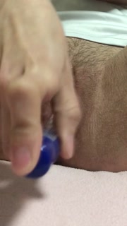 Fucking my extreme tight pussy from stick again. View from front. Wet pussy sounds