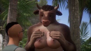 Furry cow milk drinking