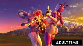 F.U.T.A. SENTAI SQUAD - Futanari Babes Team Up To CREAMPIE Volcanic Villain With Big Robot Suits