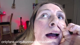 Gagging Self Loud Sound Spit on Face Snot in Nose Ring Closeup