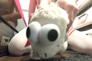 Georgeous Amateur in short skirt humping her cute slipper and piss on them/Plushies Content