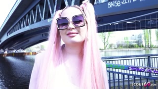 GERMAN SCOUT - Pink Hair Curvy Teen Maria Gail with Saggy Tits at Rough Anal Sex Casting