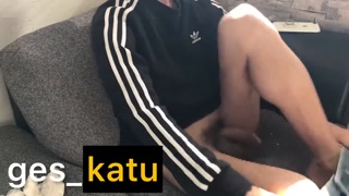 ges_katu 休日 リビングでオナニー 巨根 お腹に大量発射